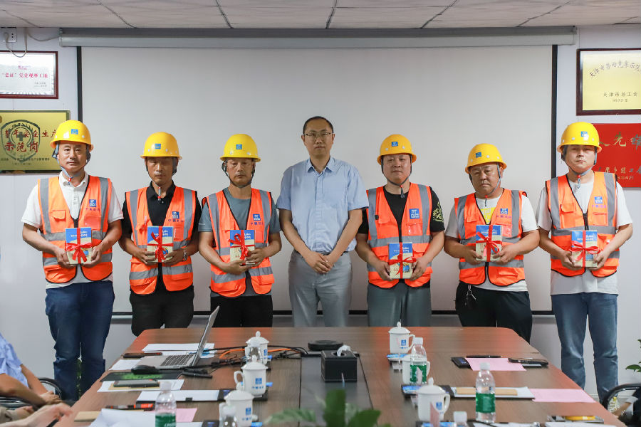 期間,與會領(lǐng)導(dǎo)為一線職工送上慰問品并合影留念,共同觀看了公司企業(yè)形象宣傳片。濱海新區(qū)總工會基層工作部相關(guān)人員,公司總部和華北分公司相關(guān)負(fù)責(zé)人,項目員工及農(nóng)民工參加了本次活動。