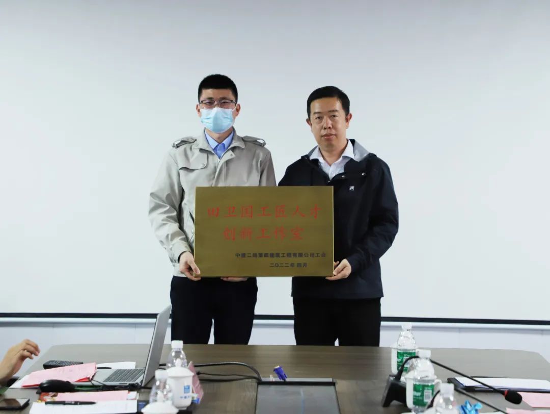 天津市團市委基層建設(shè)部部長方偉為田衛(wèi)國工匠人才創(chuàng)新工作室授牌;