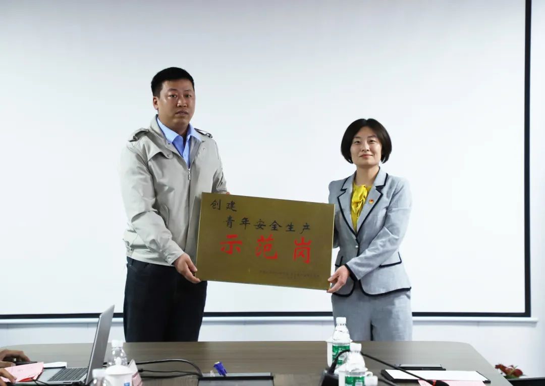 濱海新區(qū)團委副書記高媛為天津網(wǎng)絡(luò)安全中心項目青年安全生產(chǎn)示范崗授牌;