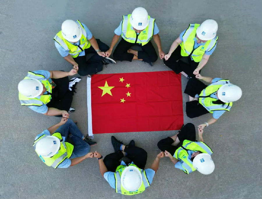 華北分公司天津網(wǎng)絡安全中心項目開展喜迎國慶佳節(jié)活動。在鮮紅旗幟的映襯下,項目黨員及青年員工緊緊簇擁在國旗周圍,用最樸實的行動表達建筑人的赤子情懷。