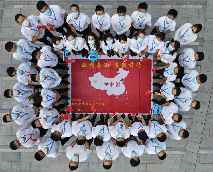 華東分公司浦江農(nóng)居點項目開展與國旗合影活動,項目黨員和青年員工緊緊環(huán)繞在國旗的周圍,唱響《我和我的祖國》,為祖國73周年華誕深情獻禮。