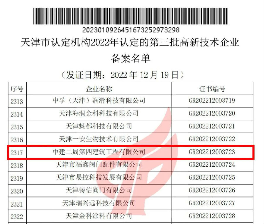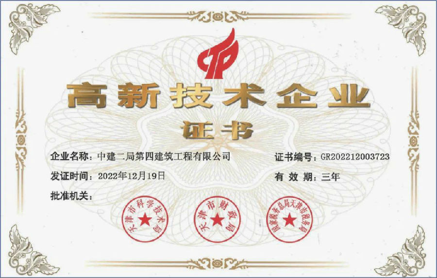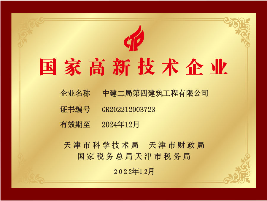 近年來,公司累計榮獲魯班獎、國家優質工程獎、中國鋼結構金獎20余項,榮獲200余項省部級重要獎項和多項社會榮譽。先后承建了浙江義欣新能源動力電池廠房項目、天津市跨海河大橋工程、天津國家網絡安全中心項目、山東抖音新文化產業園建設EPC項目等一大批高端項目。此次成功認定國家高新技術企業,便可享受稅收優惠政策,有力提升了公司市場競爭力和品牌影響力。