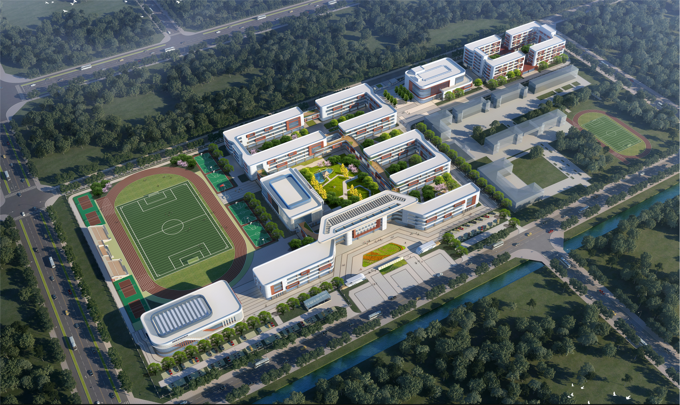 該項目位于江蘇省連云港市,總建筑面積約5.8萬平方米。建設內容包括教學樓、實驗樓、辦公綜合體、體育館、圖書館、食堂以及相關配套設施。項目建成后,將拓展辦學空間,有序擴大學位供給。全面優化教育資源布局,擴充連云港市教育資源,以高質量學校工程,改善當地辦學條件,促進教育均衡發展。